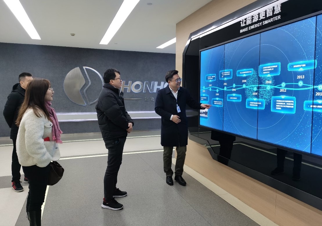 在胥總的帶領(lǐng)下,曾東城處長(zhǎng)參觀了公司展廳,詳細(xì)了解了公司的發(fā)展歷程,著重聽取了公司在綠色I(xiàn)CT基礎(chǔ)設(shè)施、低碳交通、新型電力系統(tǒng)和綜合能源服務(wù)等領(lǐng)域的技術(shù)產(chǎn)品布局,對(duì)公司積極探索新能源、新技術(shù)、新業(yè)態(tài)的發(fā)展模式表示贊賞。