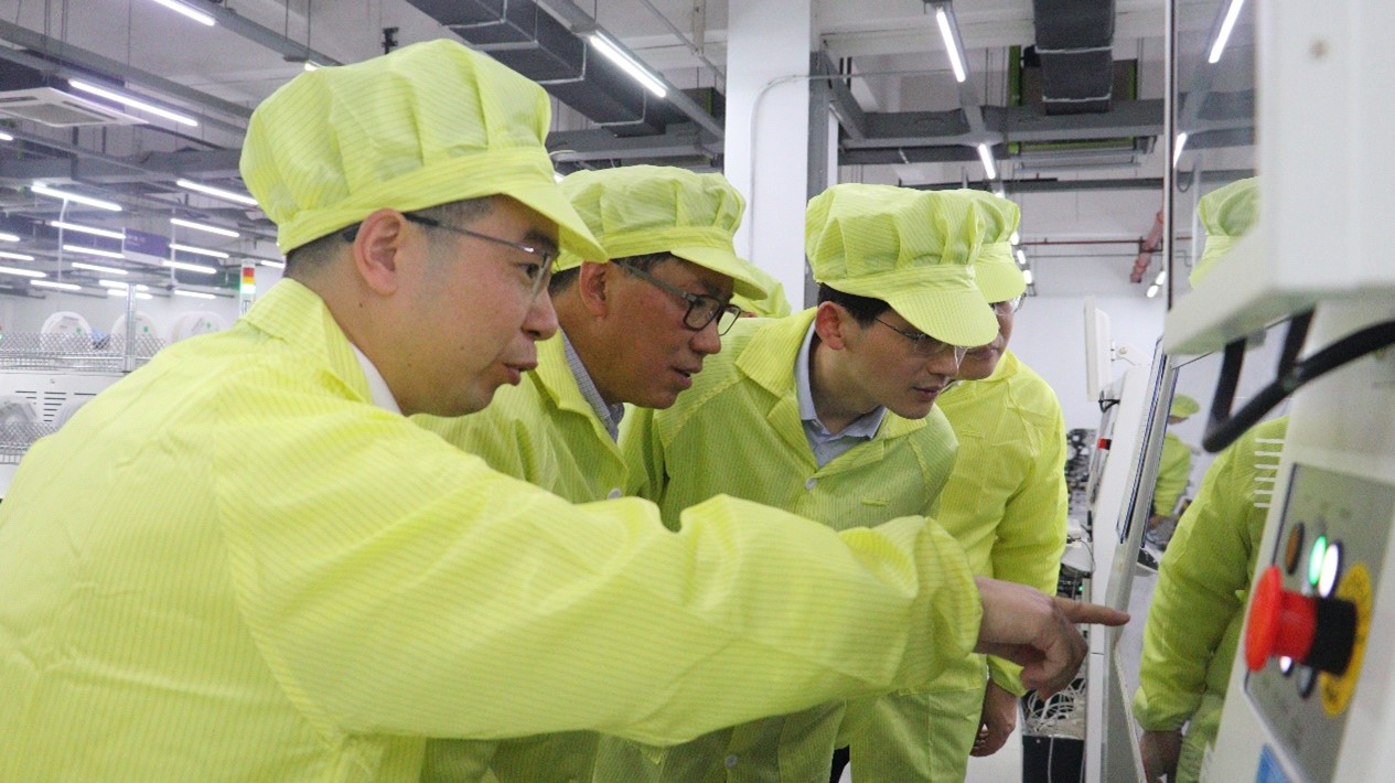 朱國(guó)錠先生陪同謝漸升書記一行依次參觀了“零碳工廠”展廳、SMT全自動(dòng)生產(chǎn)線、智能倉(cāng)儲(chǔ)、巴拿馬車間及新能源充換電產(chǎn)線。