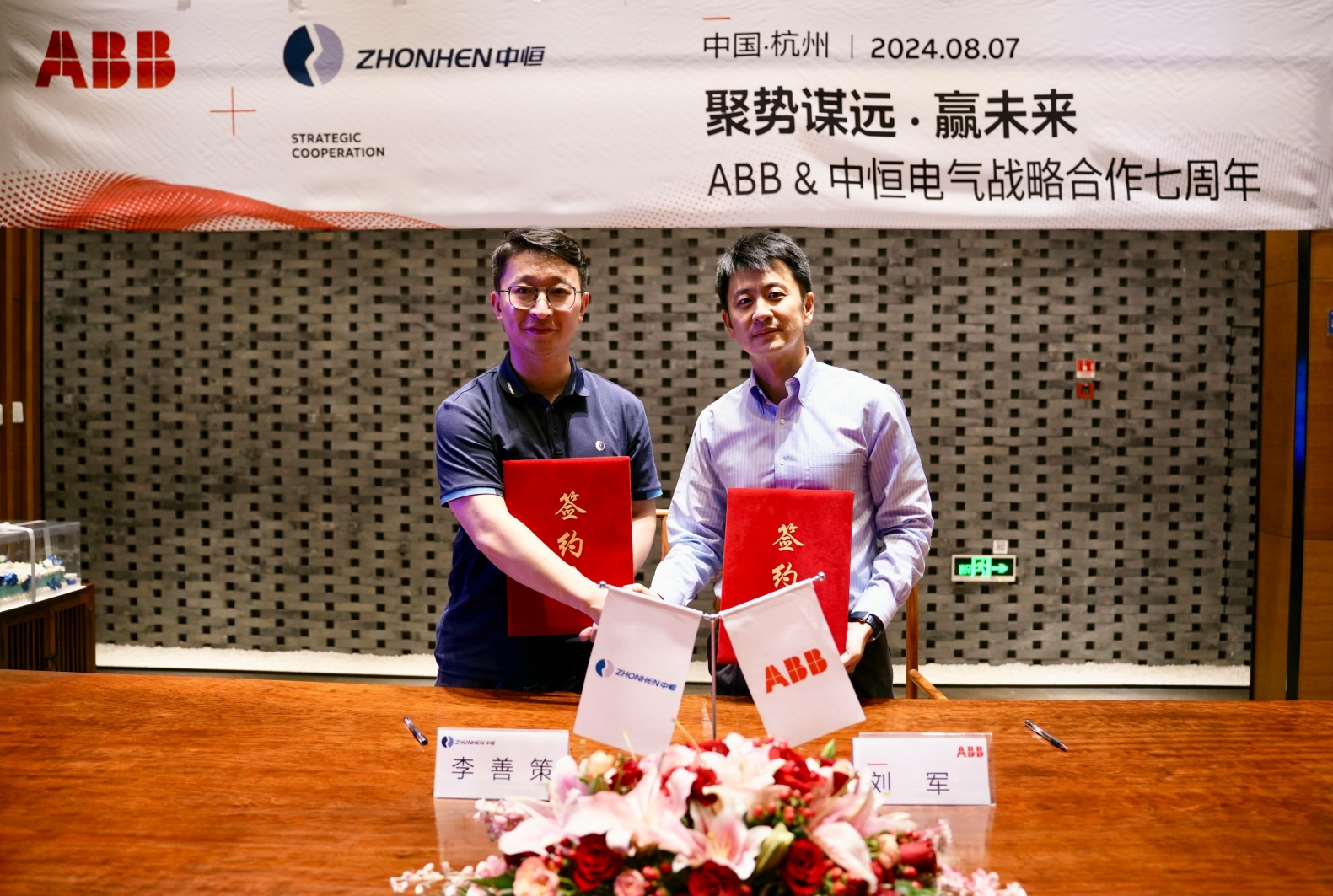 2024年8月7日下午,杭州中恒電氣股份有限公司(以下簡(jiǎn)稱:中恒電氣)與ABB(中國(guó))有限公司電氣事業(yè)部(以下簡(jiǎn)稱:ABB)在杭州中恒電氣總部舉辦了主題為“聚勢(shì)謀遠(yuǎn)·贏未來”戰(zhàn)略合作七周年簽約儀式。