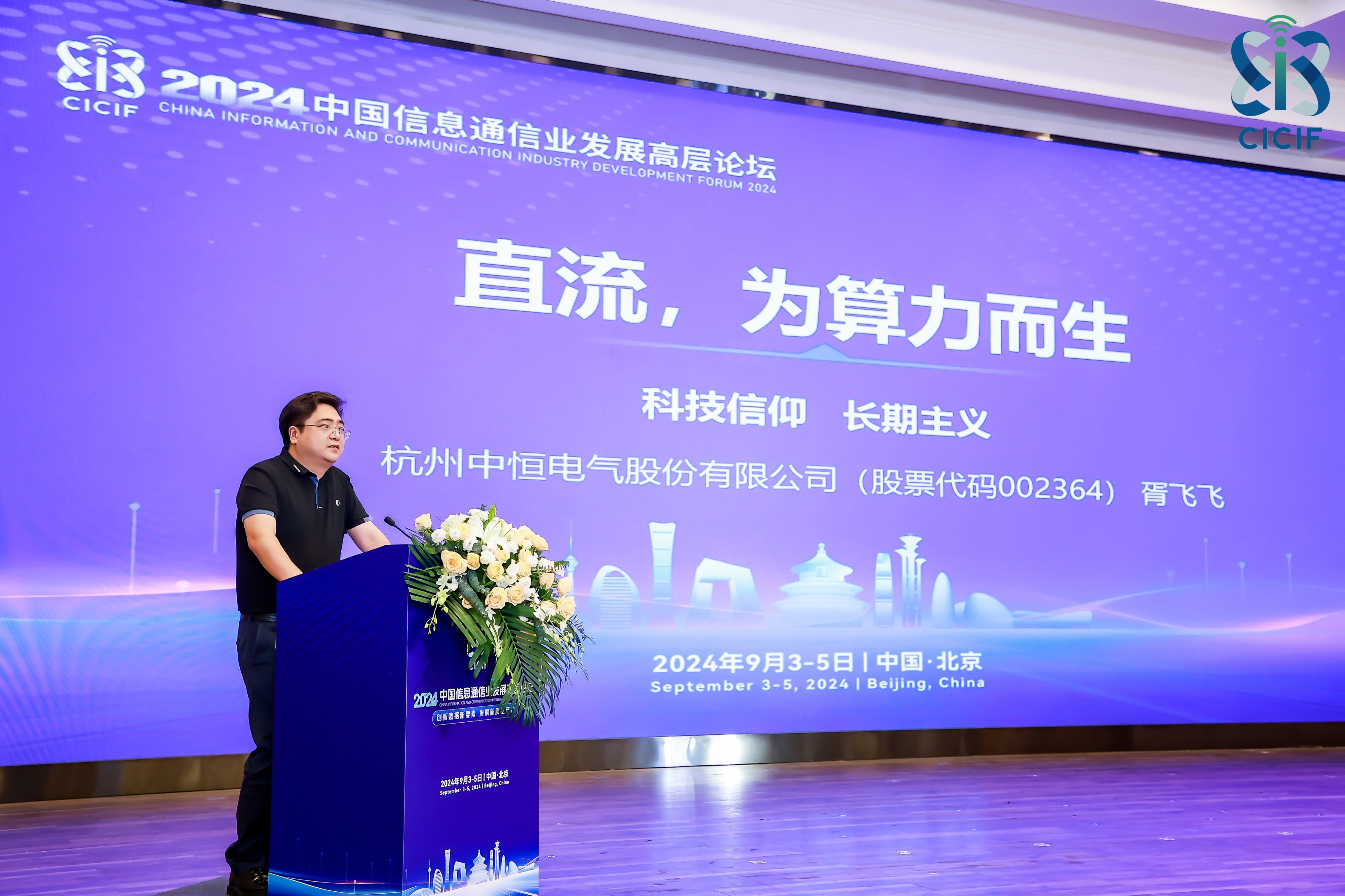2024年9月3日至5日,2024中國信息通信業發展高層論壇在北京舉行。本屆論壇以“創新數據新要素 發展新質生產力”為主題,圍繞智算中心、AI大模型、5G智聯、新型智慧城市、新型工業化、千兆網絡等熱點話題展開了深度討論。來自行業主管部門的領導、電信及通信企業的產業界代表,以及院士、專家和科研機構的各方精英匯聚一堂,共同為信息通信業的高質量發展建言獻策。杭州中恒電氣股份有限公司(以下簡稱“中恒電氣”,股票代碼:002364)榮幸受邀參與此次盛會,并在主論壇以及綠色智算中心建設分論壇上發表了主題演講。