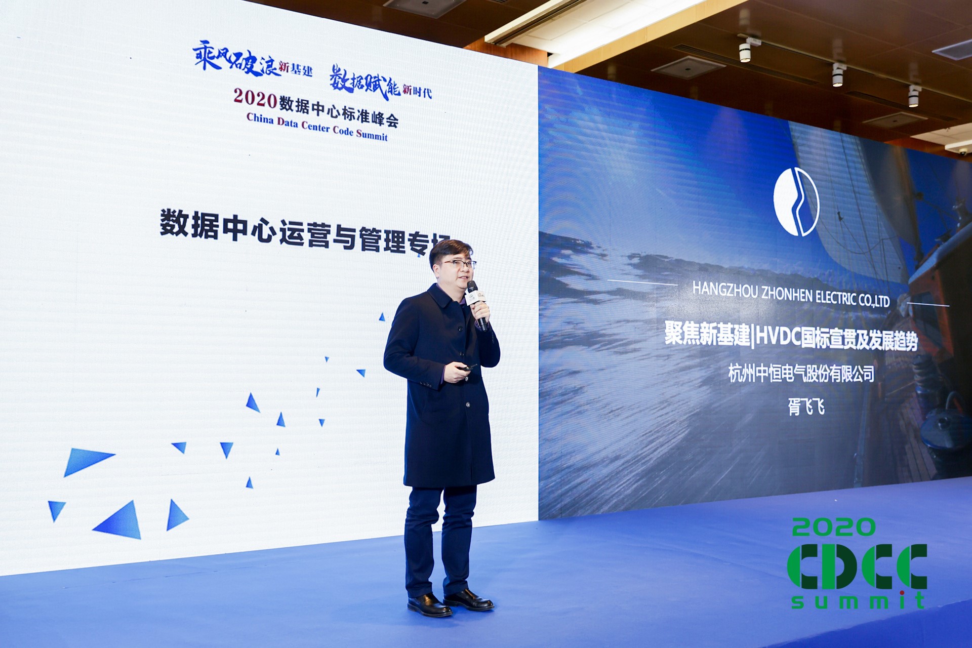 2020年11月26日上午,在國家會議中心CDCC數據中心運營與管理專場,中恒電氣HVDC-BD副總經理胥飛飛發表以“聚焦新基建|HVDC國標宣貫及發展趨勢”為主題的精彩演講。