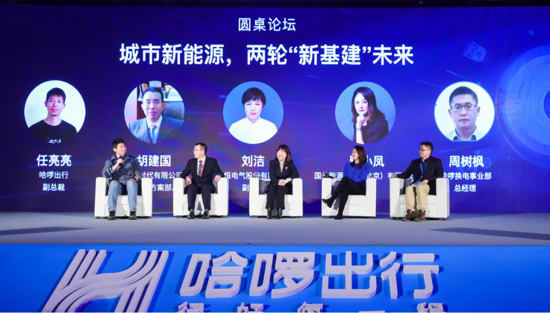 本屆產業峰會上,圍繞新國標政策驅動下,兩輪行業出行新能源消費、以換代充的的新一輪發展空間,針對兩輪換電這一未來城市的兩輪“新基建”圓桌話題,結合政策驅動利好、技術路徑選擇、行業標準制定、市場潛力空間等議題,哈啰出行副總裁任亮亮、哈啰出行換電事業部總經理周樹楓、寧德時代商用解決方案部總裁胡建國、中恒電氣副總裁劉潔、國網什馬(北京)電動科技總經理陳小鳳也進行了探討。