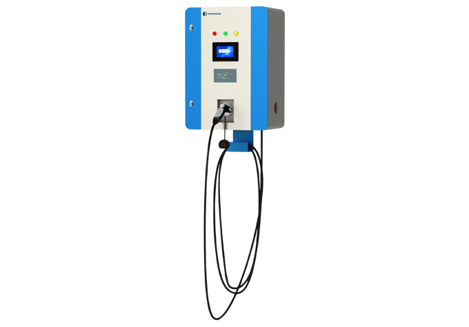 交流壁掛式充電樁(商用/家用兩用),為電動汽車提供交流慢速充電。主要由人機(jī)交互單元、控制單元、計量單元、安全防護(hù)單元組成,外觀小巧美觀。