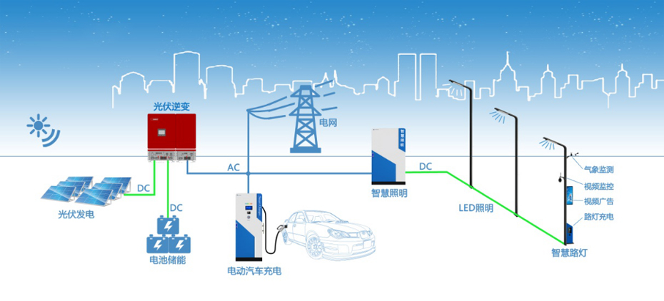 中恒電氣光儲充一體化智能充電解決方案,包含光伏發(fā)電系統(tǒng)、儲能逆變系統(tǒng)、電動汽車充電系統(tǒng)、智慧照明系統(tǒng)、安防監(jiān)控系統(tǒng)等。與傳統(tǒng)的解決方案相比,將新能源光伏發(fā)電、汽車充電、電池儲能、節(jié)能技術(shù)整合到一起, 通過物聯(lián)網(wǎng)平臺進行互聯(lián)互通,實時監(jiān)控能量流動,集中監(jiān)控、智能管理。