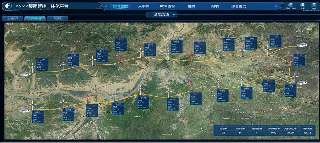 新能源智能管控平臺針對風電、光伏等新能源行業“既集中、又分散”的特點,通過集成風(光)電場分散的各類SCADA系統,結合計算機網絡、物聯網、云資源平臺、大數據等技術,實現風(光)電場設備的遠程集中監控和智能調度;通過生產管理的流程化、標準化和專業化,提升企業生產效率和管理水平,降低生產運營成本,提升經濟效益;利用先進的數據挖掘和并行計算技術對實時數據和業務數據進行進一步的統計分析和專業建模,實現企業的運營監控和績效評估,用真實、準確、全面的數據支撐企業經營的持續優化和健康發展,打造智能、高效的友好型新能源。