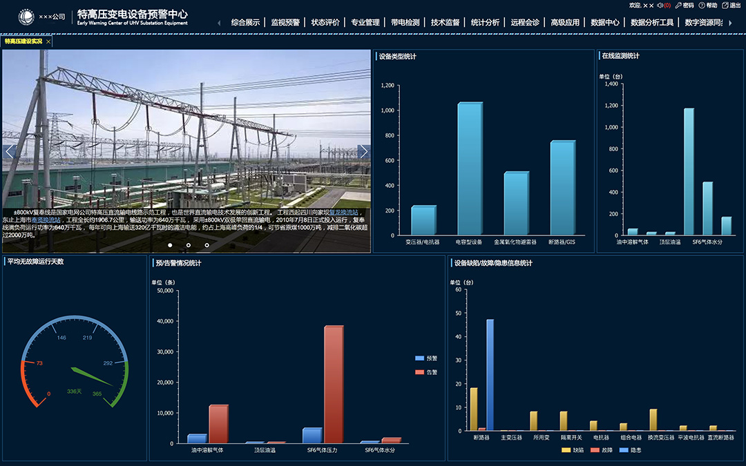 為各級定制,一鍵展示電網整體規模數量、設備裝備水平,運行工況、運檢管控情況、缺陷風險情況和各類預警等信息,實現管理人員對整個生產工作的全面掌控。